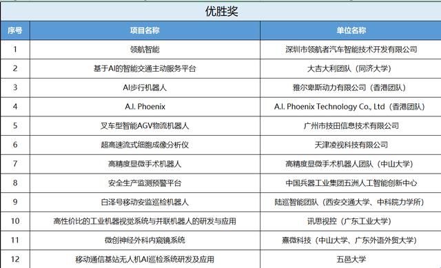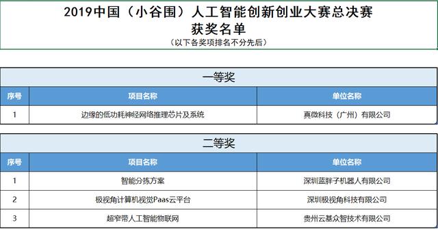 附:中國(guó)(小谷圍)人工智能創(chuàng)新創(chuàng)業(yè)大賽總決賽獲獎(jiǎng)名單