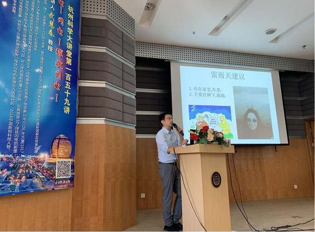 7月21日,杭州科學大講堂第159講在杭州市科技交流館三樓報告廳如期舉行。本次講座是自新冠肺炎疫情爆發(fā)以來,服務中心第一次舉辦大講堂的線下活動,現(xiàn)場參加人數(shù)控制在入座率30%。浙江大學聚變理論與模擬中心和物理系武慧春教授受邀做了“電!閃電!閃電球!”的科普報告,吸引了大講堂的大量“鐵粉”。杭州市科協(xié)二級巡視員張貴書為武教授頒發(fā)鳴謝牌。武慧春教授曾長期從事相對論電磁等離子體系統(tǒng)的相關(guān)問題研究,提出球形閃電的新理論,并首次將其聯(lián)系到閃電高能現(xiàn)象,給出了完整的理論框架。其球形閃電新理論曾入選知社的“2016中國新銳科技人物”和“浙江大學2016年度十大學術(shù)進展”。
