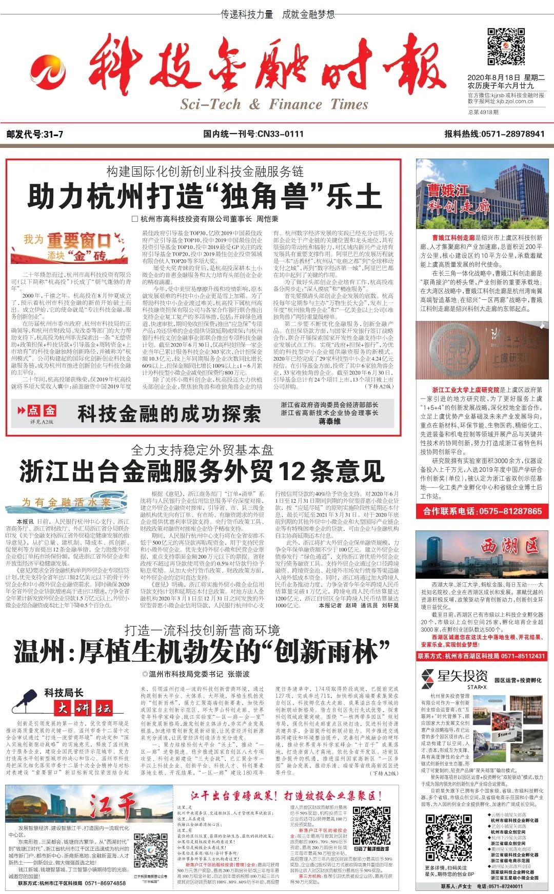 進(jìn)一步做大做強(qiáng)杭州科技金融平臺(tái),促進(jìn)創(chuàng)新鏈、資金鏈、人才鏈深度結(jié)合,從而為杭州本土創(chuàng)業(yè)企業(yè)提供更為綜合化、系統(tǒng)化、專業(yè)化的金融支持,打造一個(gè)國內(nèi)領(lǐng)先覆蓋創(chuàng)新創(chuàng)業(yè)全生命周期的科技金融體系,是杭高投未來義不容辭的使命。