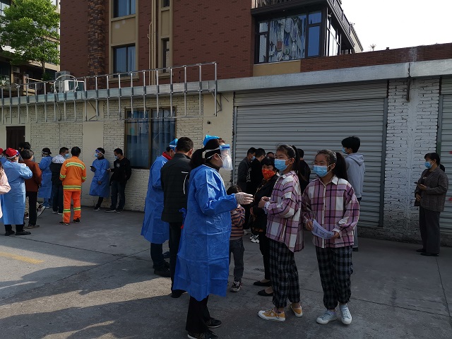 4月19日至20日,接到“清村掃樓”指令后,汪希燕帶隊(duì)在組織好核酸檢測(cè)工作的同時(shí),全員培訓(xùn)、自學(xué)“掃樓”程序“一點(diǎn)通”,按圖作戰(zhàn),分棟到組,分戶(hù)到人,對(duì)四季尊域和祥龍小區(qū)450余戶(hù)實(shí)施“掃樓”行動(dòng)。