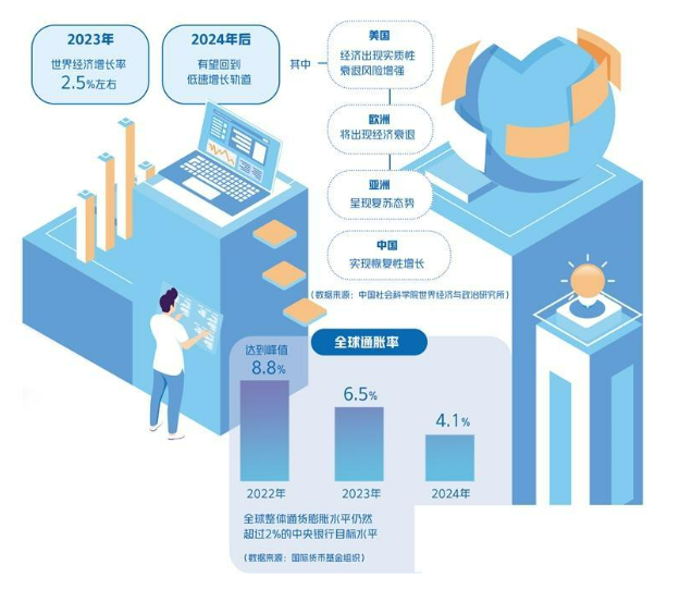 根據(jù)中國社會科學(xué)院世界經(jīng)濟(jì)與政治研究所的測算,2023年世界經(jīng)濟(jì)增長率為2.5%左右。2024年后,全球經(jīng)濟(jì)有望回到低速增長的軌道。