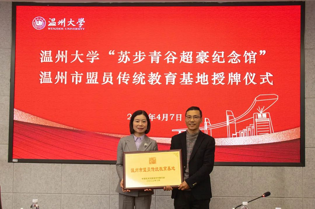 為大力弘揚(yáng)科學(xué)家精神,加強(qiáng)民盟盟員思想建設(shè),近日,民盟溫州市委會(huì)與溫州大學(xué)舉行盟員傳統(tǒng)教育基地授牌儀式,將溫州大學(xué)蘇步青谷超豪紀(jì)念館定為溫州市盟員傳統(tǒng)教育基地。授牌儀式在溫州大學(xué)巖松堂舉行,民盟溫州市委會(huì)專職副主委王黎然授牌,溫大數(shù)理學(xué)院黨委書(shū)記陳興桂代表蘇步青谷超豪紀(jì)念館接牌。