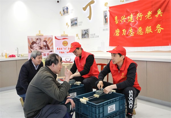 “磨剪子嘞,戧菜刀”,4月15日,建行嘉興分行老兵磨刀隊(duì)在建設(shè)街道工會(huì)雷鋒驛站首度“出征”。他們利用周六休息時(shí)間,通過(guò)志愿活動(dòng),為居民朋友們提供家門(mén)口的便民磨刀服務(wù)。