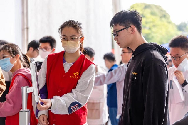 今年報考中國計量大學“三位一體”招生考試的考生數(shù)大幅度增加,為加強考試管理,學校制定考試安全保障措施,切實加強考生的身份驗證,確?荚嚬焦W校嚴格審查考生身份和報名條件,使用刷臉身份驗證儀,對考生進行身份驗證;使用配備金屬探測儀和安檢門,嚴防考生攜帶手機進入考場;考場內(nèi)設(shè)置信息屏蔽儀,防止考生使用通訊設(shè)備。