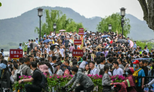 五一期間,杭州西湖斷橋,人潮涌動。