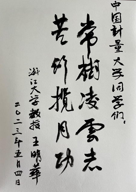 5月4日,王明華教授向中國計量大學(xué)70余名師生黨員師生講授了《跟共產(chǎn)黨走》的主題黨課。他以中共一大代表董必武“做始也簡,將畢也鉅”的題詞為引,生動地講述了一個個紅色黨史故事!昂芨吲d能夠在五四青年節(jié)這天和青年朋友們面對面交流,講好紅色故事、傳承紅色基因,是我們這一代人的重要使命!蓖趺魅A教授在課堂上激動地說。