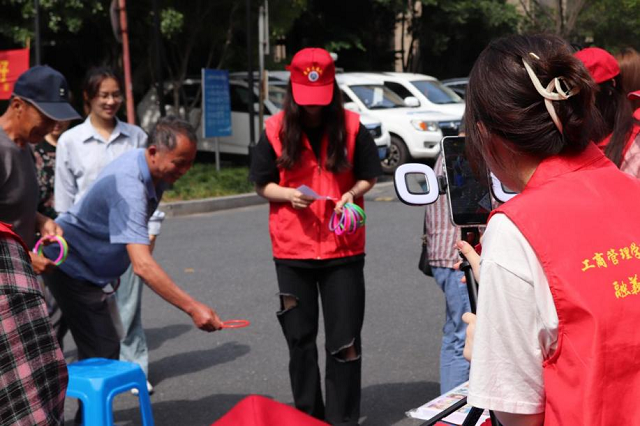 志愿者們在抖音直播間變身“反詐主播”,為網(wǎng)友們進行反詐知識的問答和科普,同時開展直播線下反詐活動——“小心中了圈套”套圈、“無詐家園”拼圖、“青牛反詐”知識小競賽、“國家反詐”APP下載等。線上線下,網(wǎng)友和居民夢幻聯(lián)動,歡呼聲四起。