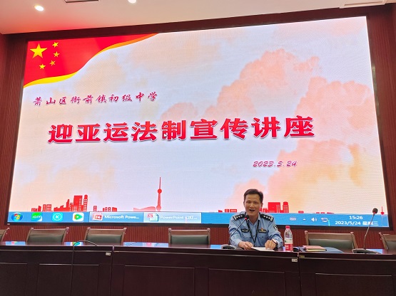 5月24日,杭州市蕭山區(qū)衙前派出所民警屠友富以法治副校長(zhǎng)的身份走進(jìn)衙前鎮(zhèn)初級(jí)中學(xué),為學(xué)校師生開展了一堂生動(dòng)有趣的“反電信詐騙”專題法治課。