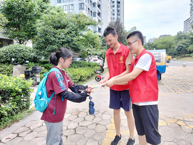 活動(dòng)中,同學(xué)走進(jìn)社區(qū)超市和居民家中,發(fā)放了30余份《生活垃圾分類投放指南》,生動(dòng)講解了垃圾分類小常識和生活中能夠保護(hù)生態(tài)環(huán)境的小舉措。同學(xué)們還在小區(qū)樓道里張貼垃圾分類宣傳資料,清掃小區(qū)花園里的垃圾并分類投放,以實(shí)際行動(dòng)踐行綠色環(huán)保理念,共建低碳環(huán)保綠色生活。
