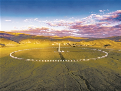 它的名字叫作圓環(huán)陣太陽射電成像望遠(yuǎn)鏡(以下簡稱“圓環(huán)陣”),位于海拔3820米的四川省甘孜州稻城縣,是目前全球規(guī)模最大的綜合孔徑射電望遠(yuǎn)鏡,也是國家重大科技基礎(chǔ)設(shè)施“空間環(huán)境地基綜合監(jiān)測(cè)網(wǎng)”(子午工程二期)的標(biāo)志性設(shè)備之一。