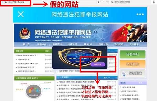 到底是什么網(wǎng)站讓吳先生深信不疑?為了一探究竟,民警打開(kāi)某網(wǎng)站,屏幕上立即彈出“網(wǎng)絡(luò)違法犯罪舉報(bào)網(wǎng)站”頁(yè)面,粗粗一看,逼真的網(wǎng)頁(yè)也差點(diǎn)讓陳亮信以為真,細(xì)看之下,陳亮發(fā)現(xiàn)網(wǎng)頁(yè)的清晰度非常低,點(diǎn)擊頁(yè)面試圖查看相關(guān)鏈接內(nèi)容沒(méi)有任何反應(yīng),沒(méi)多久頁(yè)面接直接跳到報(bào)警入口,很快對(duì)方發(fā)來(lái)信息:“您好,這里是反詐騙報(bào)案官網(wǎng),請(qǐng)問(wèn)您是否遭遇了網(wǎng)絡(luò)詐騙?”