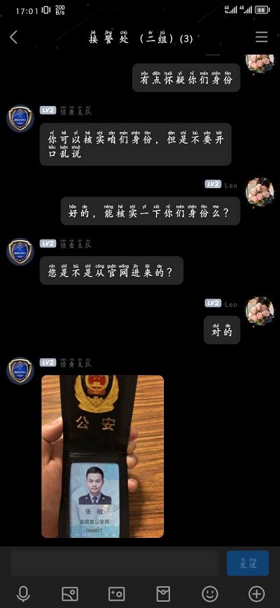 民警假裝自己受騙,對(duì)方要求提供信息進(jìn)行網(wǎng)上立案,信息中除了姓名、身份證號(hào)、被騙時(shí)間、數(shù)額、原因及聯(lián)系電話等正常信息外,居然還要求提供QQ賬號(hào)。果不其然,沒(méi)多久,對(duì)方發(fā)來(lái)一個(gè)名為“專(zhuān)案網(wǎng)警警官”的QQ群號(hào)”讓民警添加后進(jìn)行處理。當(dāng)民警質(zhì)疑對(duì)方身份真實(shí)性,對(duì)方立即將一張警官證發(fā)了過(guò)來(lái),當(dāng)民警提出視頻核實(shí)時(shí),遭到對(duì)方拒絕,并將其拉黑。