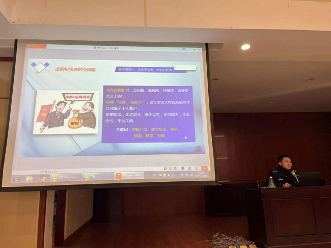 蕭山公安局反欺詐專家王佳南警官?gòu)氖裁词请娦旁p騙、電信詐騙的常見(jiàn)形式、如何識(shí)別防范電信詐騙、如何提升防范能力等方面為企業(yè)員工生動(dòng)形象地上了一堂反詐課堂。為切實(shí)維護(hù)群眾財(cái)產(chǎn)安全,“捂緊”自己的口袋,王警官用貼切生活實(shí)際的案例來(lái)給大家舉例,向群眾宣傳常見(jiàn)的詐騙預(yù)防方法,告知大家“刷單”、“殺豬盤(pán)”、“虛假投資”、“征信異議”等常見(jiàn)的詐騙手段。他介紹,這些手段通常的特征有高回報(bào)、低風(fēng)險(xiǎn)、回報(bào)快,極易誘使受害人上鉤。王警官告誡大家要提高警惕,要牢記十個(gè)凡是,六個(gè)一律,杜絕電信網(wǎng)絡(luò)詐騙發(fā)生。同時(shí),他呼吁大家牢記反詐中心電話“96110”,并下載“國(guó)家反詐中心”APP。