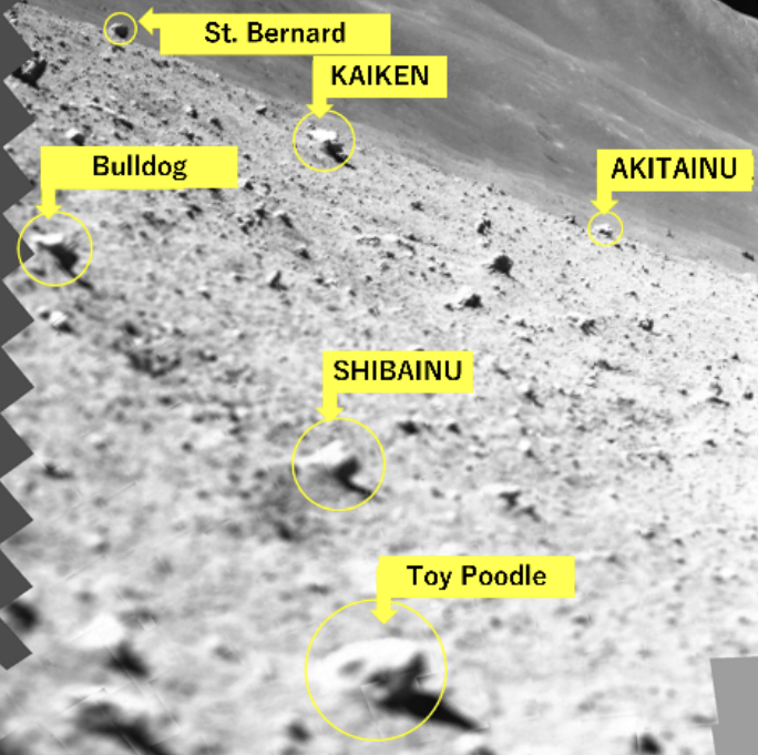 SLIM希望研究巖石中的礦物質(zhì)和其他成分,揭示月球起源。目前,日本希望利用SLIM收集有關(guān)著陸點“花蜜海月球“酒!(Sea of Nectar)”區(qū)域的信息。此前,任務(wù)小組還把SLIM著陸后捕捉到的257幅圖像合并,制作了一張展示著陸點的照片,團隊還為感興趣的巖石起了綽號。