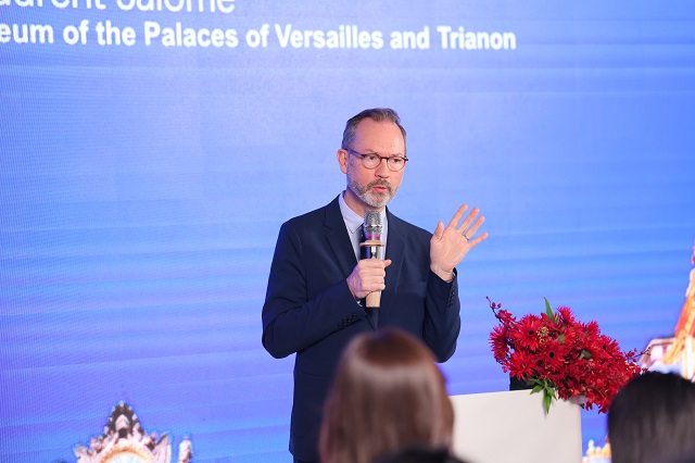 開幕式上,凡爾賽宮館長(zhǎng)洛朗·薩洛梅、法國(guó)駐上海總領(lǐng)事王度、中國(guó)歐盟協(xié)會(huì)副會(huì)長(zhǎng)兼秘書長(zhǎng)宋敬武、凡爾賽宮皇家歌劇院院長(zhǎng)洛朗·布倫納、英藍(lán)集團(tuán)董事長(zhǎng)于志強(qiáng)及多位嘉賓出席,共同見證這一中法文化與藝術(shù)交流的盛事。洛朗·薩洛梅在致辭中宣布展覽開幕,并對(duì)中法兩國(guó)的文化交流表達(dá)美好愿景。