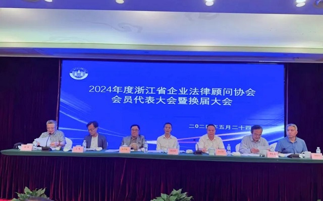 5月24日下午,2024年度浙江省企業(yè)法律顧問協(xié)會會員代表大會暨換屆大會在杭州舉行,選舉產(chǎn)生浙江省企業(yè)律師顧問協(xié)會新一屆理事會。