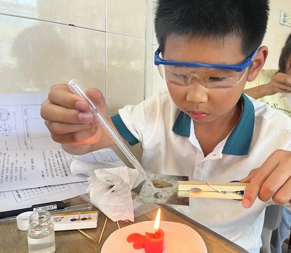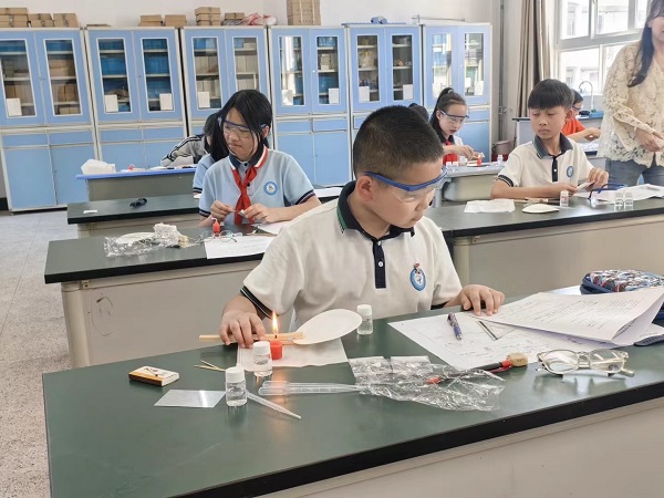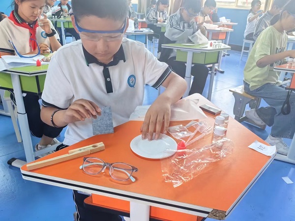 其中,一項(xiàng)富有挑戰(zhàn)性的任務(wù)是判斷“一瓶不知名液體,其中溶解了什么”。面對(duì)這一難題,學(xué)生們對(duì)事物表象進(jìn)行深入分析,進(jìn)而提出假設(shè),并通過(guò)進(jìn)一步的實(shí)驗(yàn)驗(yàn)證,最終得出了準(zhǔn)確的結(jié)論。在大賽現(xiàn)場(chǎng),孩子們各展所長(zhǎng),大膽創(chuàng)意,充分展現(xiàn)出了扎實(shí)的實(shí)驗(yàn)技能和邏輯思維能力。