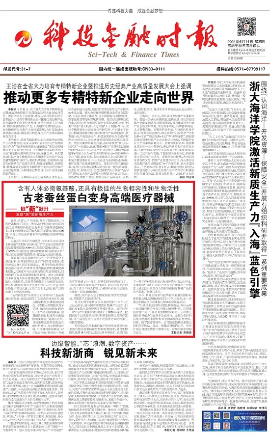 編者按》》》眼下,浙江正全力以赴“在以科技創(chuàng)新塑造發(fā)展新優(yōu)勢(shì)上走在前列”,科技金融時(shí)報(bào)全媒體推出“向‘新’躍升——發(fā)現(xiàn)‘浙’里新質(zhì)生產(chǎn)力”系列報(bào)道,深度挖掘一批在發(fā)展新質(zhì)生產(chǎn)力上敢打頭陣、勇當(dāng)先鋒、爭(zhēng)當(dāng)尖兵的典型。