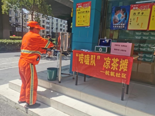 近日,杭州市拱墅區(qū)東新街道杭氧社區(qū)黨群服務(wù)中心門口設(shè)立了一個“愛心涼茶攤”,專為環(huán)衛(wèi)工人、外賣小哥、快遞員、交警等戶外工作者及過往居民提供免費(fèi)的涼茶和防暑藥品。據(jù)悉,杭氧社區(qū)涼茶攤開放時間為每天11:00-16:00,將持續(xù)開放到8月底。(冷耀聞)