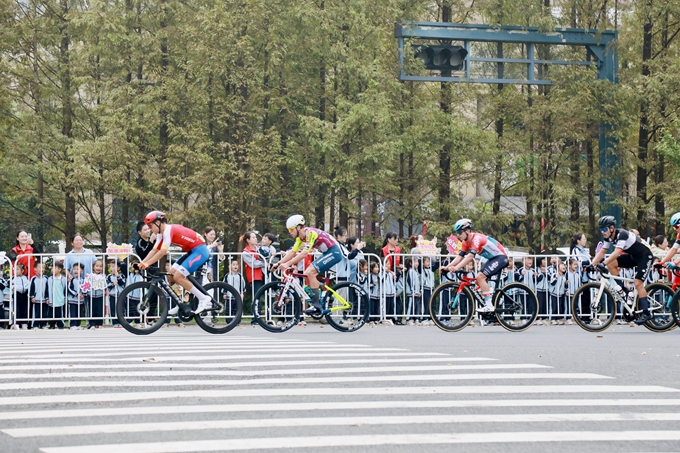 孩子們在老師的帶領(lǐng)下,排著整齊的隊伍,有序地站在安全區(qū)域內(nèi)觀賽點,高舉自制的加油牌,上面寫著“運動員加油”勇往直前”等鼓勵的話語。當自行車運動員們飛馳而過時,孩子們揮舞著小手,齊聲吶喊:“加油!加油!”