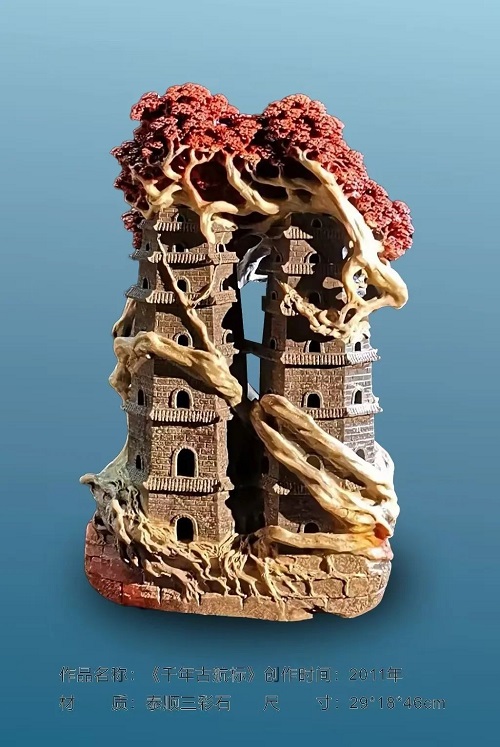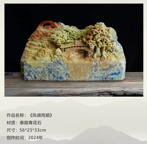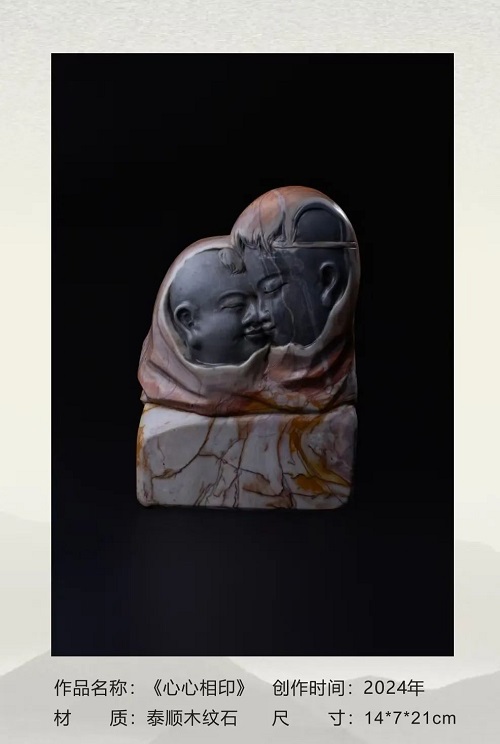 潘成松的石雕作品,向來以“因石施藝”“依色取巧”的精妙技法聞名遐邇。潘成松視石頭為“有靈魂的載體”,主張“雕與不雕”的理念:保留石材天然肌理,僅以局部雕刻點(diǎn)睛。