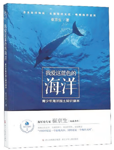 看了由海軍史專家崔京生寫的《我愛這藍(lán)色的海洋》這本書后,我大受震撼。書的封面有著一大片的海洋,由深淺不一的藍(lán)色構(gòu)成,海洋里還有一只鯨魚,看不清它的樣子,卻為這本書增添了一抹神秘而又富有生命力的色彩。