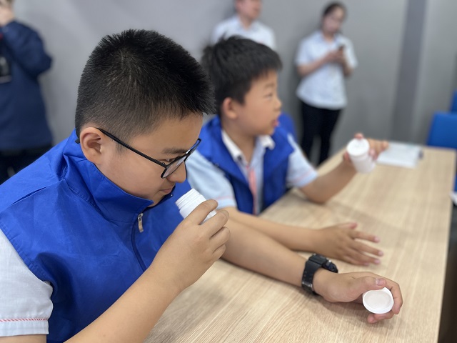 如果說(shuō)陳列室是時(shí)空交織的回響,科普課堂則是一場(chǎng)沉浸式的探香體驗(yàn)。當(dāng)科技輔導(dǎo)員拋出“聞香祛病是傳說(shuō)還是科學(xué)”的疑問(wèn)時(shí),同學(xué)們的好奇心瞬間被點(diǎn)燃。兩場(chǎng)“嗅覺(jué)實(shí)驗(yàn)”更是課堂氛圍推向高潮。