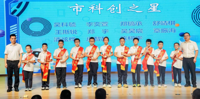 “今天,你們都是未來(lái)的科學(xué)家!”縉云縣實(shí)驗(yàn)小學(xué)教育集團(tuán)陳曉暉校長(zhǎng)在致辭中,用充滿感染力的話語(yǔ)鼓勵(lì)孩子們大膽探索。隨后,活動(dòng)為在2024學(xué)年麗水市及縣級(jí)科技大賽中斬獲佳績(jī)的“科創(chuàng)之星”頒發(fā)獎(jiǎng)杯,閃耀的獎(jiǎng)牌不僅是榮譽(yù)見證,更成為臺(tái)下小觀眾眼中“科技榜樣”的具象化符號(hào)。