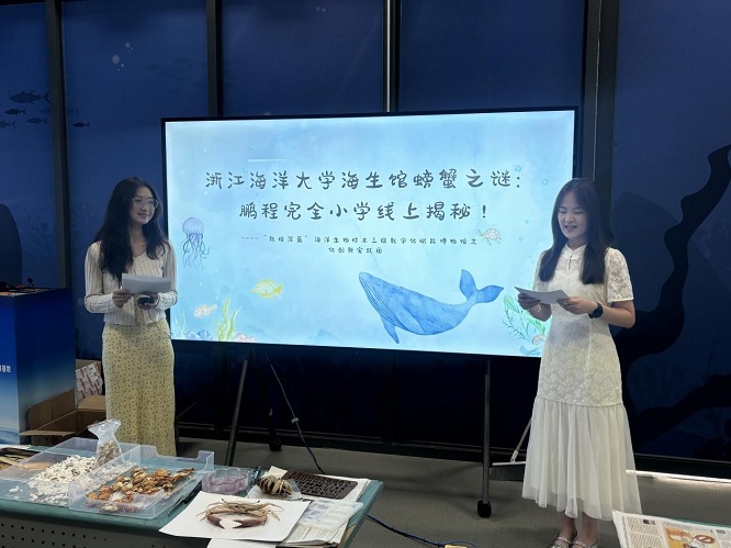 近日,浙江海洋大學(xué)“數(shù)繪深藍”海洋生物標本三維數(shù)字化賦能博物館文化創(chuàng)新實踐團以展館直播、展品展示等數(shù)字化方式,聯(lián)合湖南省婁底鵬程完全小學(xué)開展了一場別開生面的海洋知識科普實踐活動,為40余位山區(qū)孩子們打開了一扇探索海洋奧秘的窗口。本次活動內(nèi)容豐富,海洋生物博物館整體講解、蟹類專題科普課堂、海洋生物標本制作演示等環(huán)節(jié),進一步厚植孩子們的海洋保護意識。