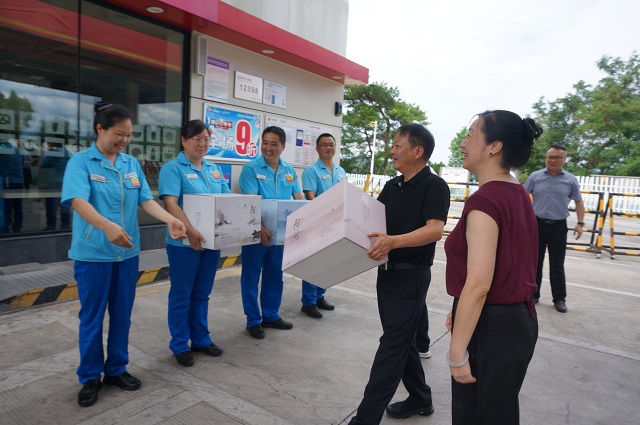 現(xiàn)場(chǎng),董文吉關(guān)切詢問加油站員工日常工作強(qiáng)度、作息安排和生活狀況!疤鞖膺@么熱,工作時(shí)一定要注意防暑,身體才是本錢!”董文吉高度贊揚(yáng)員工不為高溫酷暑,始終堅(jiān)守崗位、保障油品穩(wěn)定供應(yīng)的奉獻(xiàn)精神,并將藿香正氣水、清涼油、礦泉水、西瓜等防暑降溫物資一一送到員工手中。