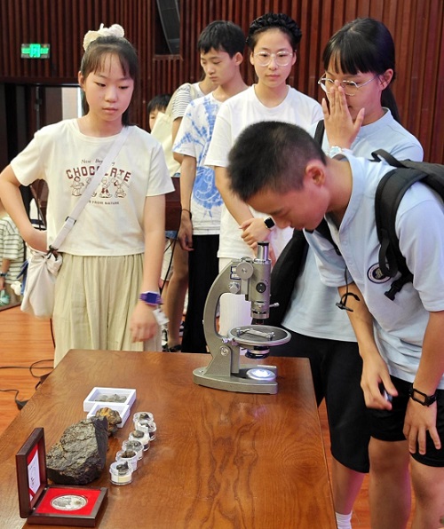 寧波市天文愛好者協(xié)會(huì)秘書長毛錦旗在現(xiàn)場展示了隕石標(biāo)本!斑@可不是普通石頭,是宇宙寄來的‘明信片’。”他舉著顯微鏡,讓孩子們看隕石上的紋路,“你看這坑坑洼洼,是它在太空里‘闖禍’留下的疤!”一個(gè)小男孩忍不住伸手摸了摸,小聲驚呼:“涼絲絲的,像揣了塊小星球!”這樣的講座把科學(xué)知識(shí)拉到孩子的眼前,讓科學(xué)從“聽說”變成“觸摸”。