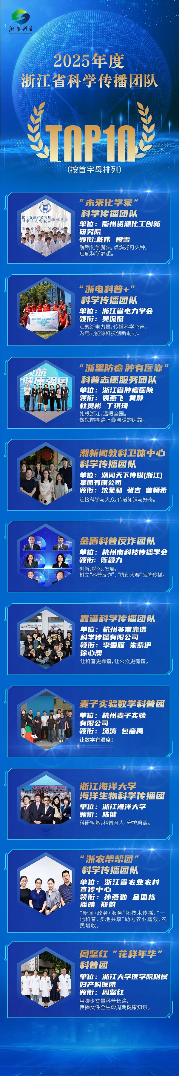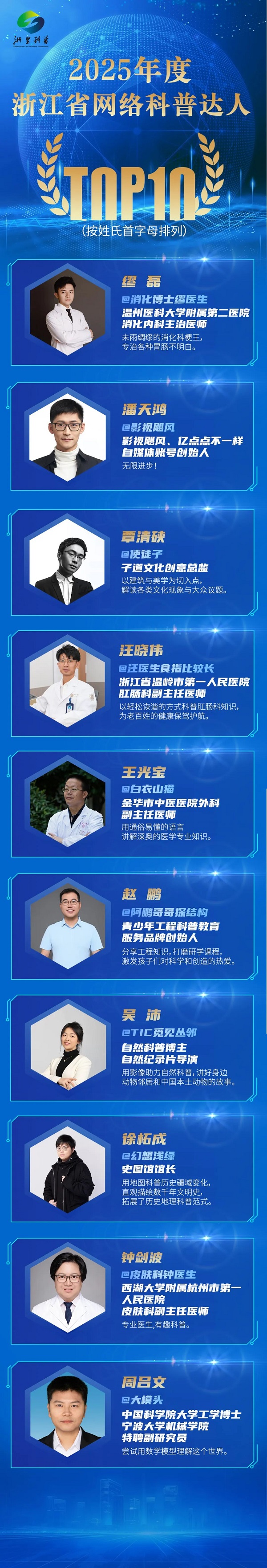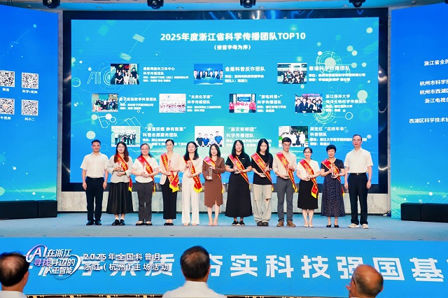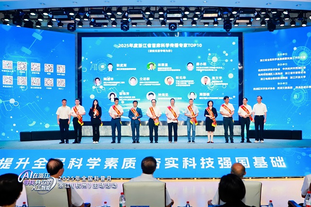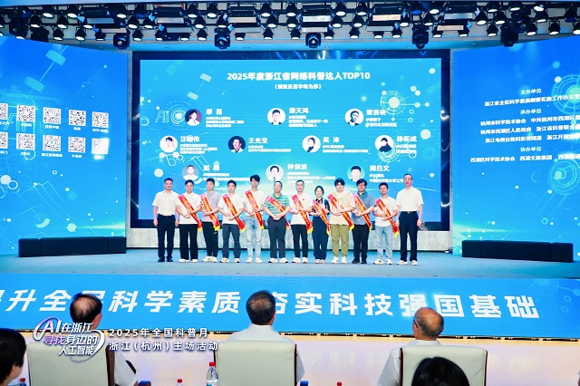 活動(dòng)現(xiàn)場亮點(diǎn)紛呈,備受關(guān)注的2025年浙江省“十百千萬”科學(xué)傳播專家名單在現(xiàn)場正式揭曉——2025年度浙江省首席科學(xué)傳播專家TOP10、2025年度浙江省科學(xué)傳播團(tuán)隊(duì)TOP10與2025年度浙江省網(wǎng)絡(luò)科普達(dá)人TOP10名單,逐一亮相。入選者包含破解技術(shù)密碼的首席專家、打造爆款科普產(chǎn)品的創(chuàng)意團(tuán)隊(duì)、吸引千萬網(wǎng)友愛上科學(xué)的網(wǎng)絡(luò)科普達(dá)人……這些優(yōu)秀個(gè)體與團(tuán)隊(duì)的涌現(xiàn),彰顯出浙江在科學(xué)傳播領(lǐng)域的強(qiáng)勁實(shí)力。