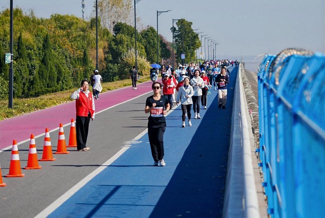 早上9點(diǎn)半,浙江省教育工會(huì)主席、浙江省鐘聲體協(xié)主席王玉慶宣布活動(dòng)開(kāi)始,隨著發(fā)令聲響起,各高校代表隊(duì)有序出發(fā),激情洋溢的健步活動(dòng)正式開(kāi)啟。陽(yáng)光下,金燦燦的銀杏葉隨風(fēng)搖曳,江面開(kāi)闊波光粼粼,隊(duì)伍中,有“健步達(dá)人”全力沖刺,有人三五結(jié)伴暢談,還有人不時(shí)駐足,用鏡頭定格江畔美景與運(yùn)動(dòng)瞬間。不同的節(jié)奏,同樣的熱情,讓這段路程充滿了快樂(lè)與溫暖。