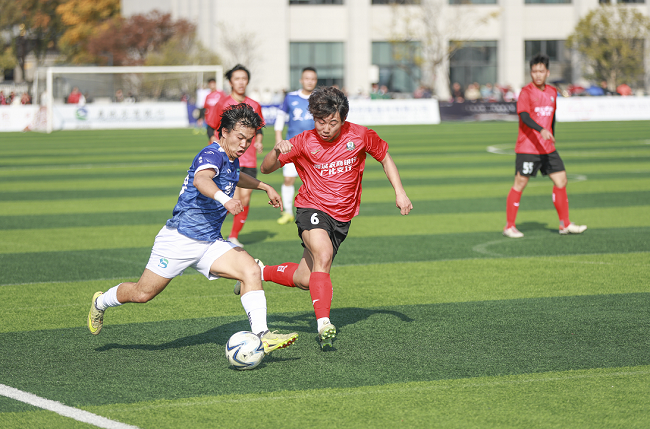 隨著張崇波宣布賽事開(kāi)賽,現(xiàn)場(chǎng)彩煙噴射,旗幟揮舞。開(kāi)幕式后,揭幕戰(zhàn)隨即打響,對(duì)陣雙方為廣化街道足球隊(duì)與濱江街道望江隊(duì),兩支隊(duì)伍在綠茵場(chǎng)上展開(kāi)了激烈的角逐,上半場(chǎng),雙方多次上演頭球、遠(yuǎn)射、吊射等精彩進(jìn)攻,卻均未能突破對(duì)方堅(jiān)固防線。場(chǎng)下,觀眾席內(nèi)更形成了“藍(lán)紅對(duì)壘”的助威格局,雙方球迷的加油聲此起彼伏,甚至蓋過(guò)了賽場(chǎng)廣播的聲音。