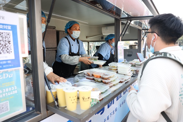 為方便考生用餐,學(xué)校在正門口、教學(xué)樓下等3處位置設(shè)置移動餐車、餐點,開放教授長廊、部分教室和餐廳作為用餐及午休區(qū),休息區(qū)內(nèi)環(huán)境安靜整潔,充足飲用水、常用藥品箱、考試應(yīng)急箱等物資一應(yīng)俱全,全力保障考生的休憩需求。從大連理工大學(xué)遠道而來的考生陳韻鈺對餐車服務(wù)印象深刻,她說:“沒想到一出考場就能吃上香噴噴的飯菜,很方便,不用冒著寒風(fēng)找地方就餐,真心感覺被暖到了!