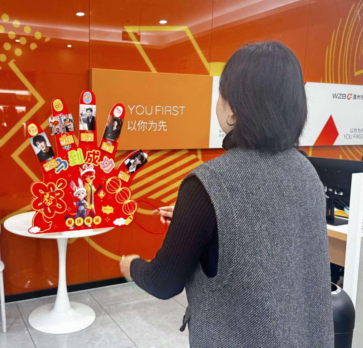 節(jié)日不僅要送溫暖,更要送快樂。在龍港江浦社區(qū)支行,“套住幸!敝黝}趣味活動火熱開展,F(xiàn)場設置的紅色互動裝置將“國民男神”“馬到成功”“圈住福運”等趣味元素巧妙結合,成為全場打卡焦點。大家興致勃勃地參與套圈游戲,瞄準、投擲、命中,每一次成功都引來陣陣歡笑。在輕松愉悅的氛圍中,女性朋友們卸下平日忙碌,盡情享受節(jié)日的愜意與美好。