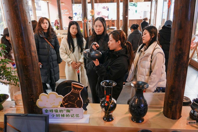 3月10日上午,活動(dòng)主會(huì)場(chǎng)移師金漪湖云蝶中心。潮玩非遺嘉年華·金東文旅好物展開幕,鄉(xiāng)土美食、非遺文創(chuàng)琳瑯滿目,吸引旅行商與游客駐足品鑒。這不僅是一場(chǎng)展銷,更是金東以文旅為媒、推動(dòng)助農(nóng)共富的生動(dòng)實(shí)踐。