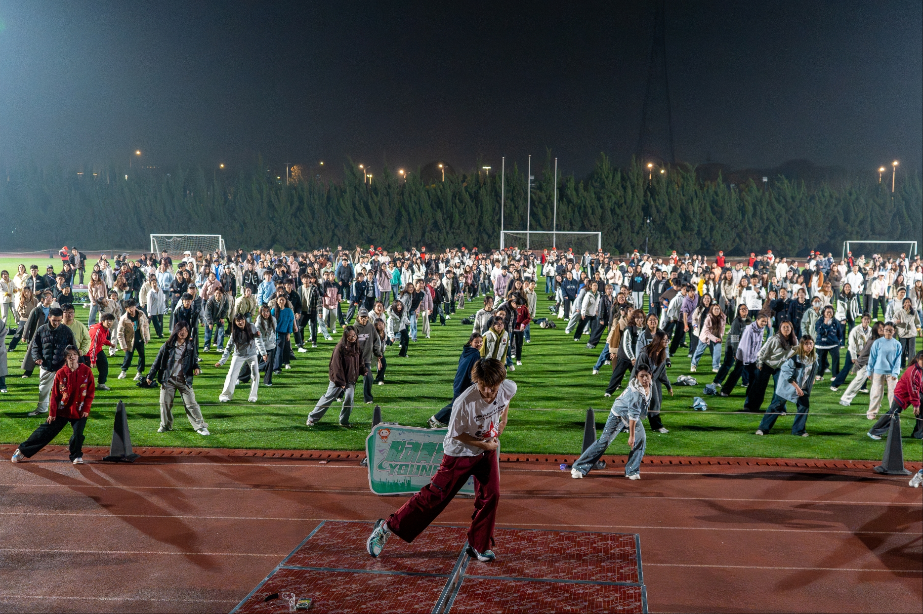 活力熱舞環(huán)節(jié)作為活動(dòng)的核心亮點(diǎn),更是點(diǎn)燃了全場(chǎng)氛圍!豆舶l(fā)財(cái)》《危險(xiǎn)派對(duì)》等多首動(dòng)感曲目輪番奏響,活動(dòng)不設(shè)門檻、無(wú)需評(píng)比,師生們自由加入、隨心舞動(dòng),用歡快的舞步展現(xiàn)青春風(fēng)采,用飽滿的熱情傳遞健康力量。夜色中,現(xiàn)場(chǎng)派發(fā)的熒光手環(huán)與發(fā)光眼鏡交織成流動(dòng)的星光,師生們一邊舞動(dòng),一邊鏡頭記錄精彩瞬間,讓青春活力在校園中持續(xù)傳遞。