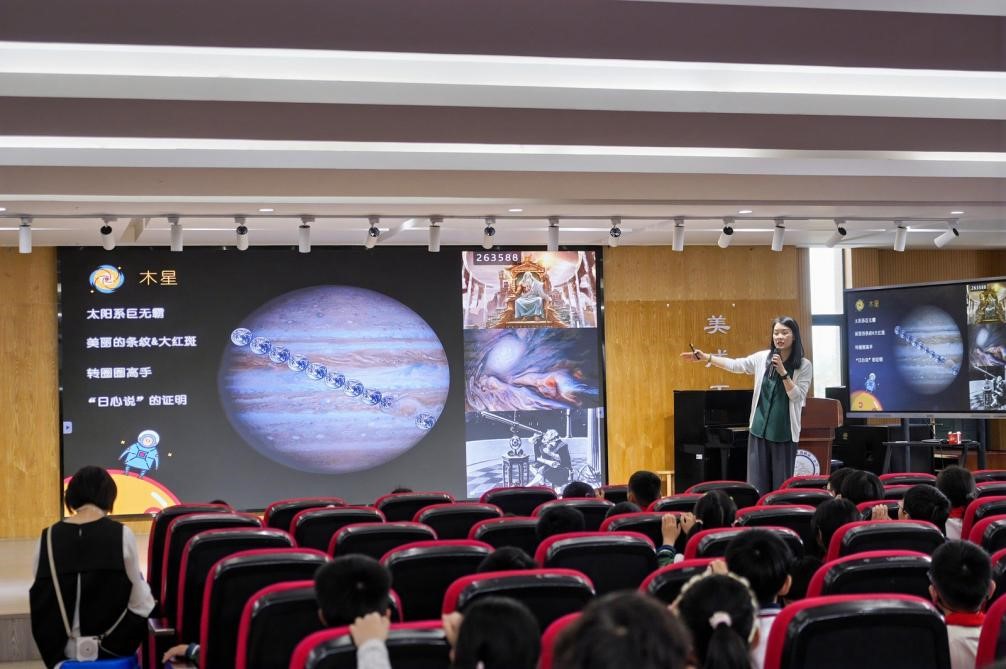 講座現(xiàn)場,孫希嵐老師用生動有趣的語言和震撼的星空影像,帶領孩子們從熟悉的太陽系出發(fā),遨游至遙遠的星系。從八大行星的獨特風貌,到絢麗的星系星云,復雜的宇宙知識化作了孩子們眼中閃爍的好奇光芒。孫老師鼓勵孩子們:“希望這次講座能在你們心中種下一顆科學的種子,讓你們在未來的學習生活中,能時常抬頭,愉快地和夜空中熟悉的星星‘打招呼’。”